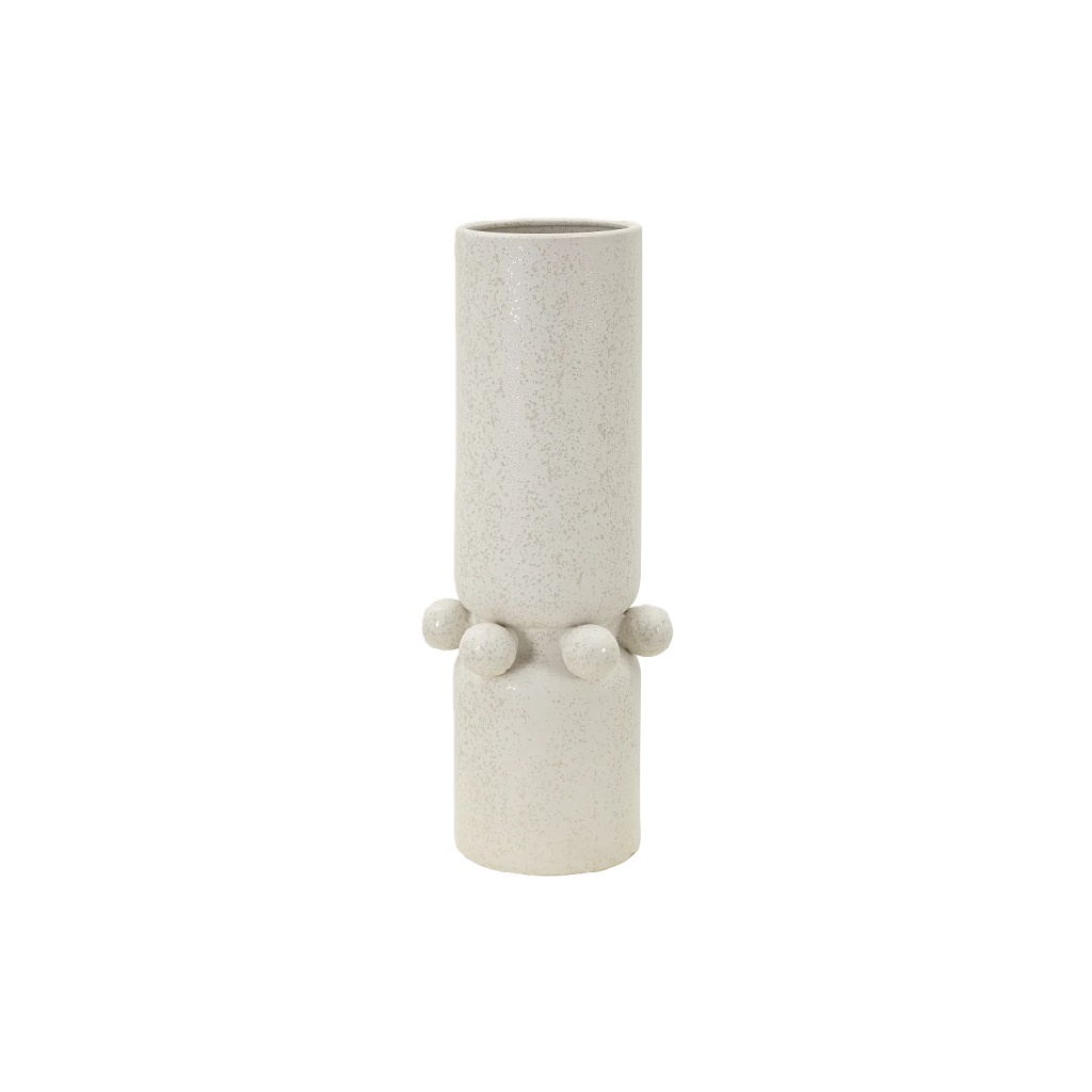 Unieke Cilindrische Keramische Vaas - Beige met Bolvormige Accentrand